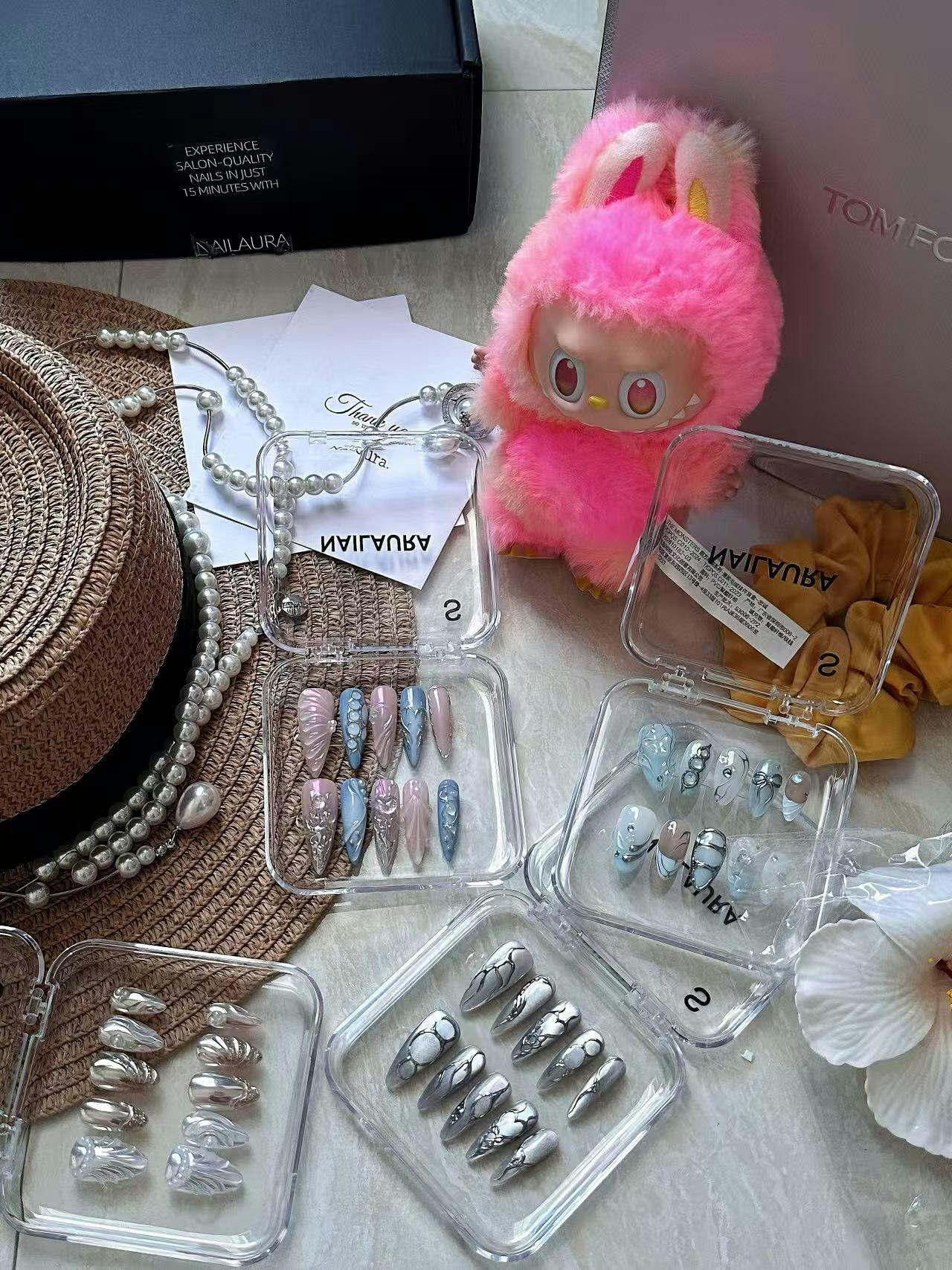 The "Pearl Surf" are inspired by the pearlescent sheen of Hawaii's coast and the dynamic movement of the ocean waves. The design artfully combines the texture of seashells with delicate golden shimmer, creating a luxurious yet natural ambiance. Each nail resembles a pearl caressed by the waves, radiating a soft and captivating glow, bringing an air of elegance and mystery to your fingertips.